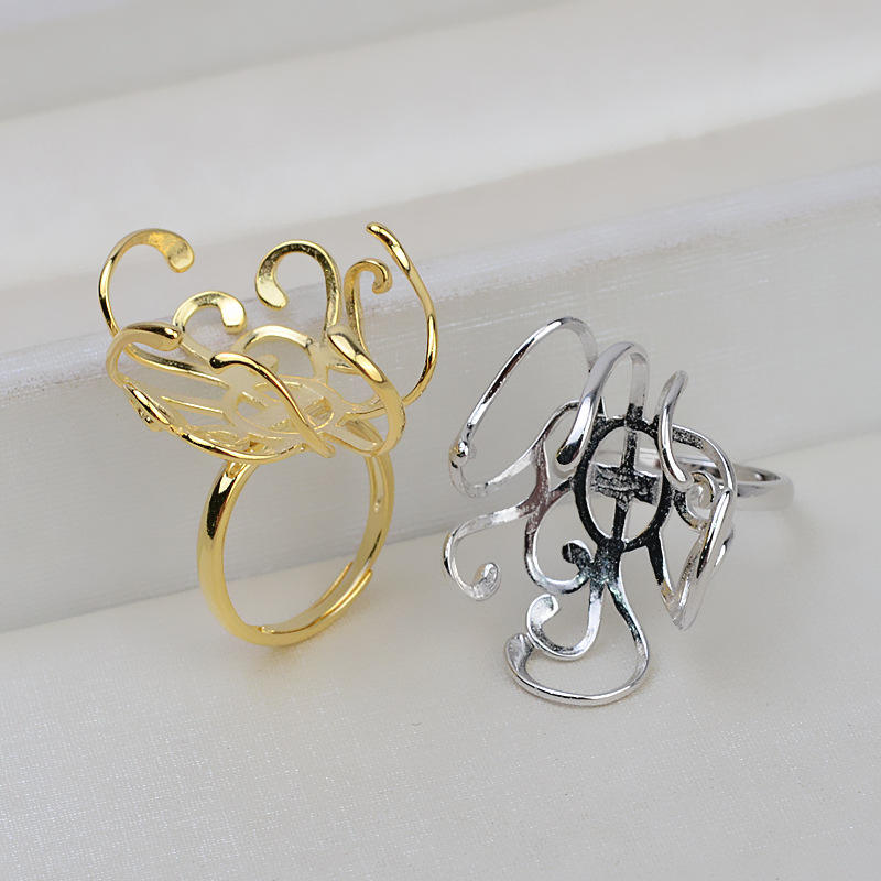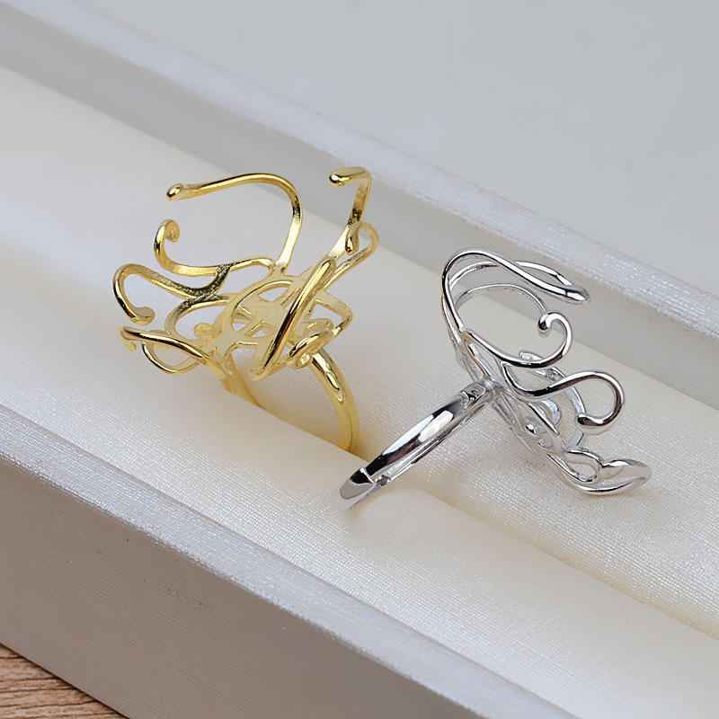 Anneau de bus large en argent S925 fait main, sans broche, incrusté de perles baroques, base creuse, accessoire DIY 1945
