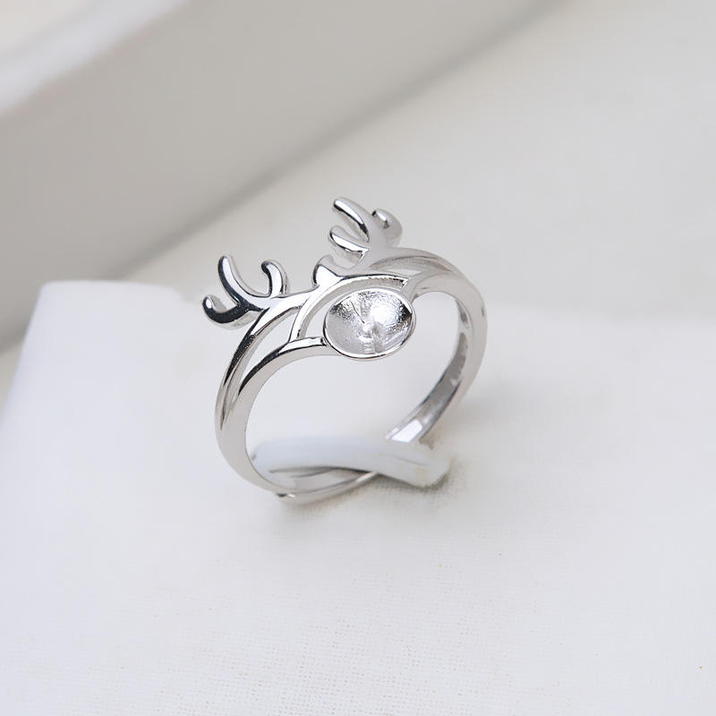 Anneau ouvert en argent S925 fait main, accessoires de perles DIY, support de perle creux en forme de bois de cerf, composants de bijoux, 153