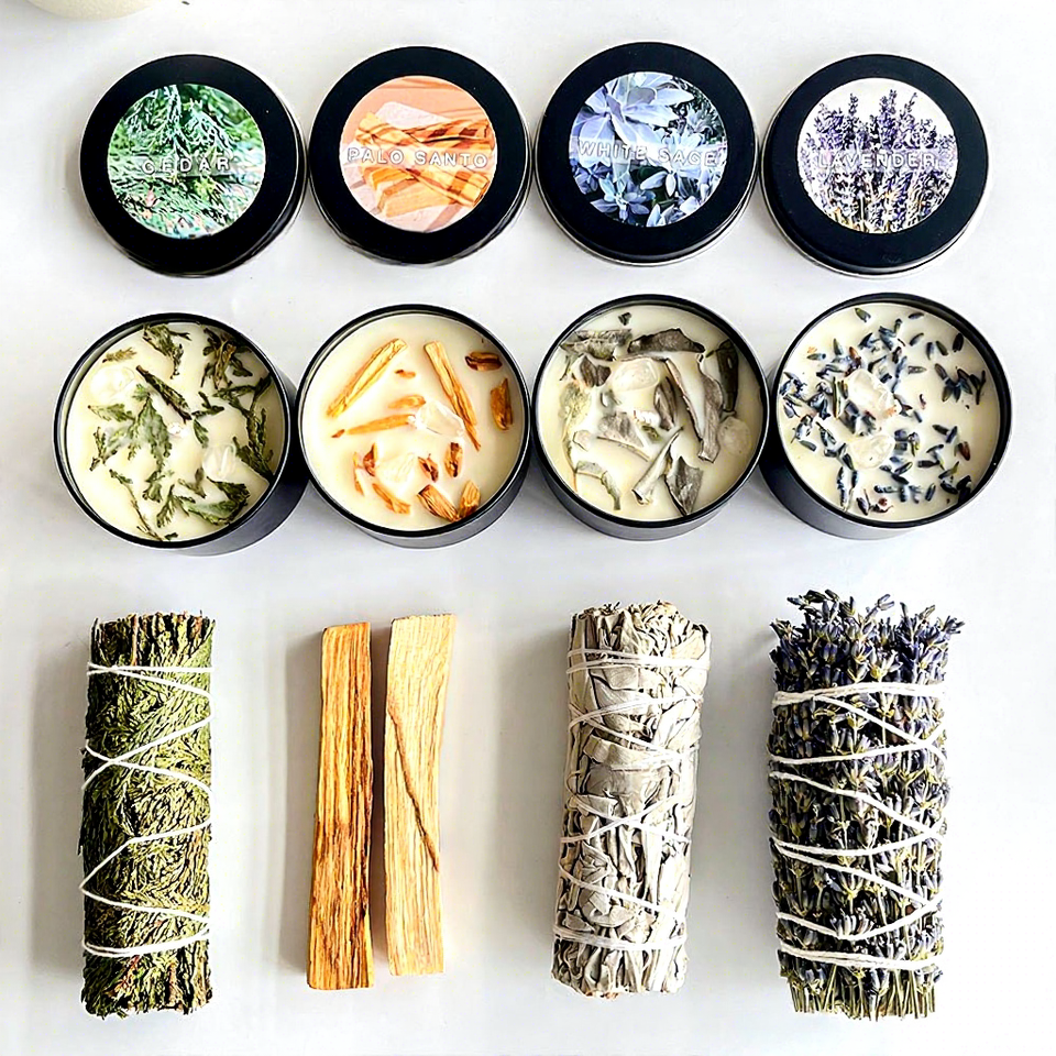 Sauge blanche, palo santo péruvien, cèdre, lavande