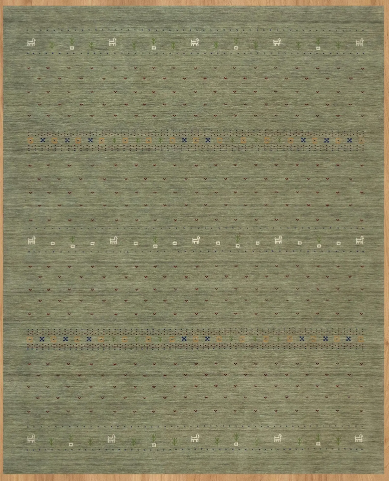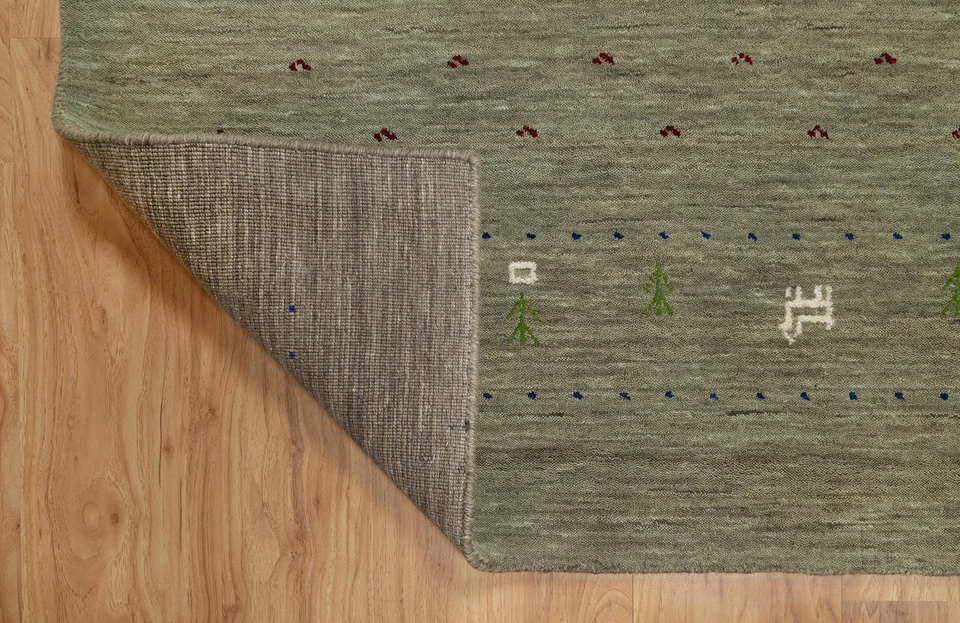 Tapis Gabbeh en laine vert sauge fait main, design tribal minimaliste, grand tapis de sol, décoration d'intérieur confortable pour le salon