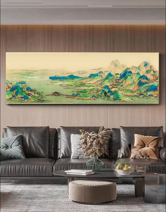 Handmade Sandstone Painting - Chinese Famous Landscape "A Thousand Miles of Rivers and Mountains"