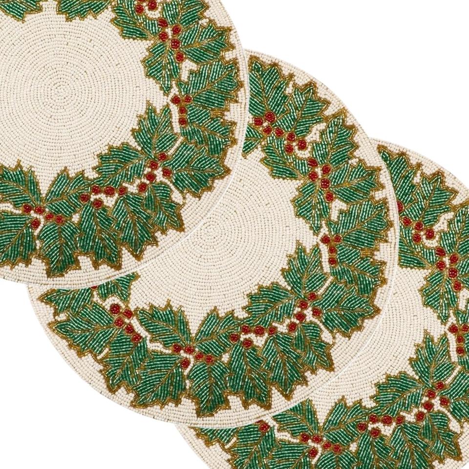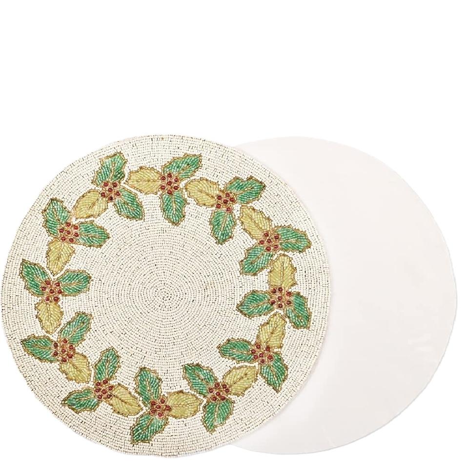 Napperon de Noël en Satin fait à la main Design perlé napperon chargeur tapis pour la maison mariage fête Table décoration plante Banquet