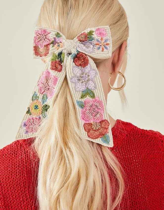 Barrette à cheveux florale brodée à la main avec perles de rocaille pour femmes et filles, accessoire de coiffure pour mariage et fête, en forme de ruban