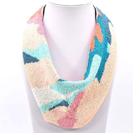 Collier écharpe brodé de perles de rocaille fait main Collier écharpe de perles de rocaille artisanal Collier écharpe perlée de rocaille brodée