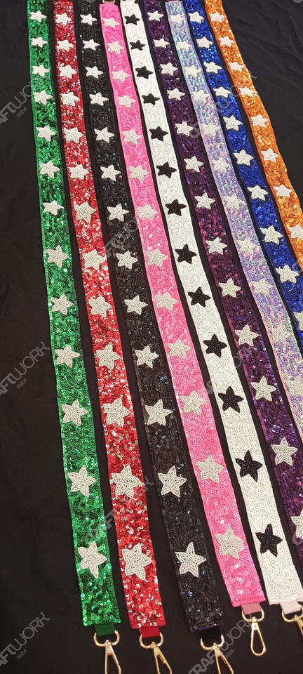 Sangle de sac à motif étoile en sequins faite à la main, large, scintillante, détachable, pour porté épaule ou croisé, sangle de remplacement tendance