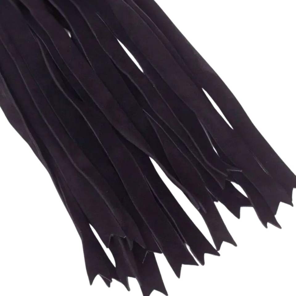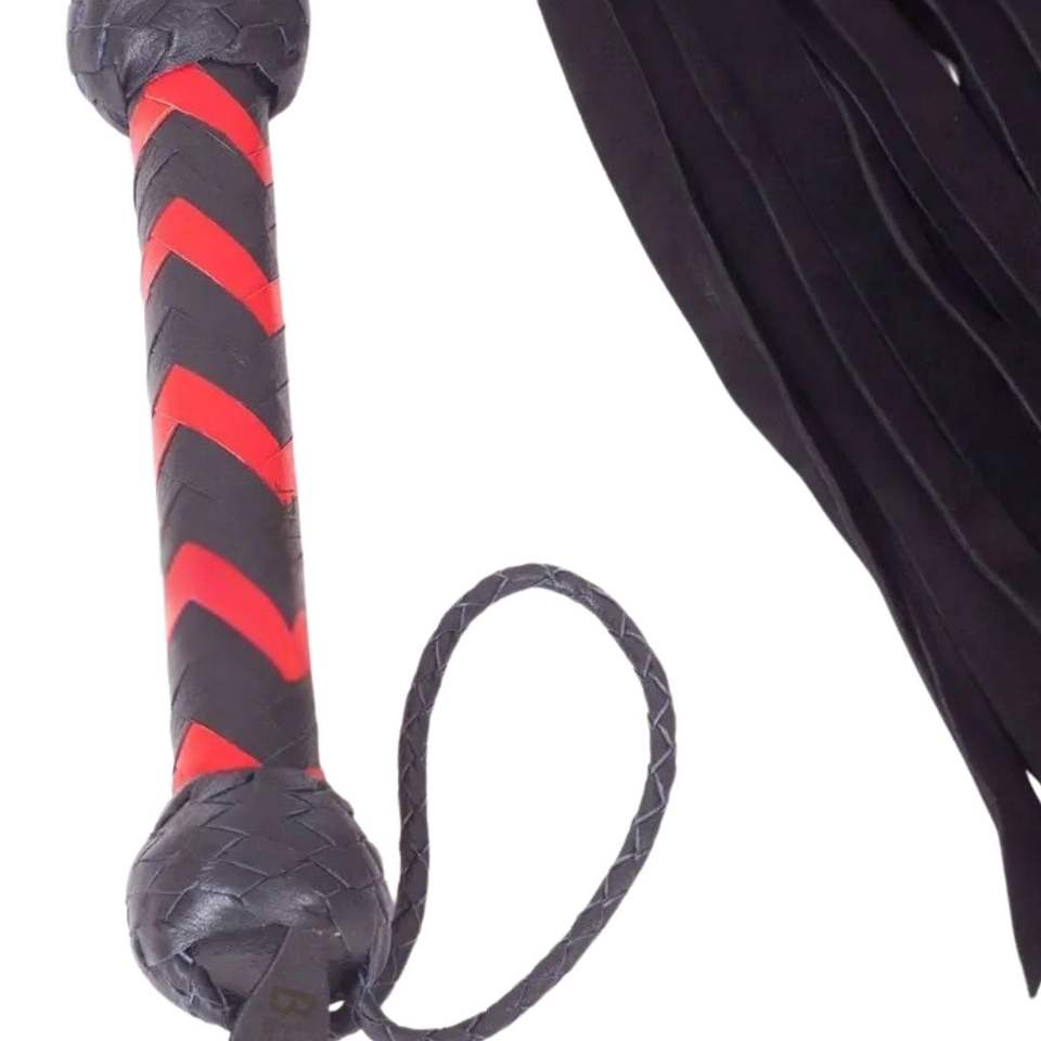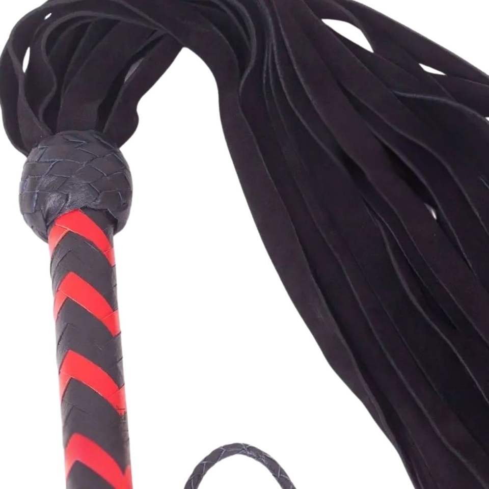 Flogger en cuir de mouton fait main avec poignée épaisse, boucle en acier, largeur 2,5 cm, sangle de poignet imprimée par transfert thermique pour le contrôle