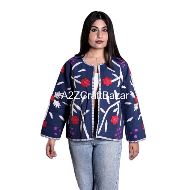 Handmade Women's Winter Knitted Quilted Cotton Bomber Jacket Eco-Friendly Breathable Quick Dry V-Neck Suzani Floral Embroidered
