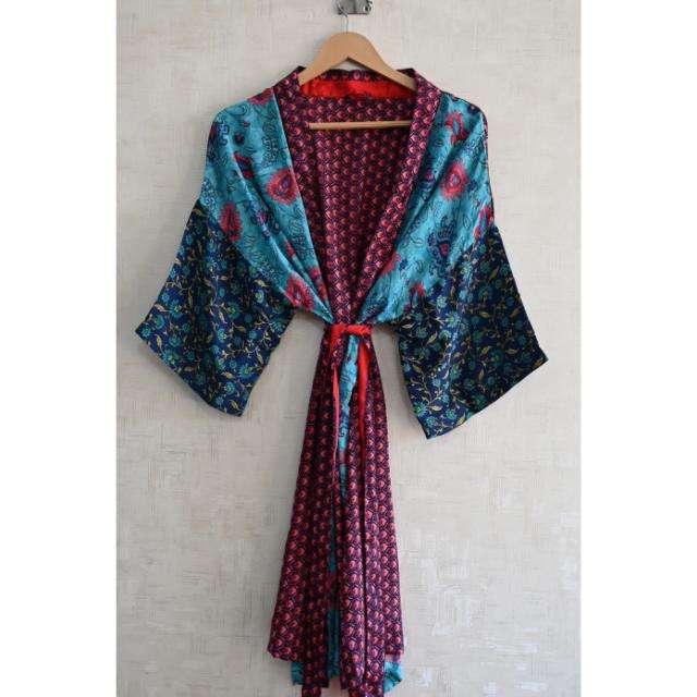 Robe kimono en patchwork de soie faite à la main, longue robe de nuit de luxe bohème pour femmes