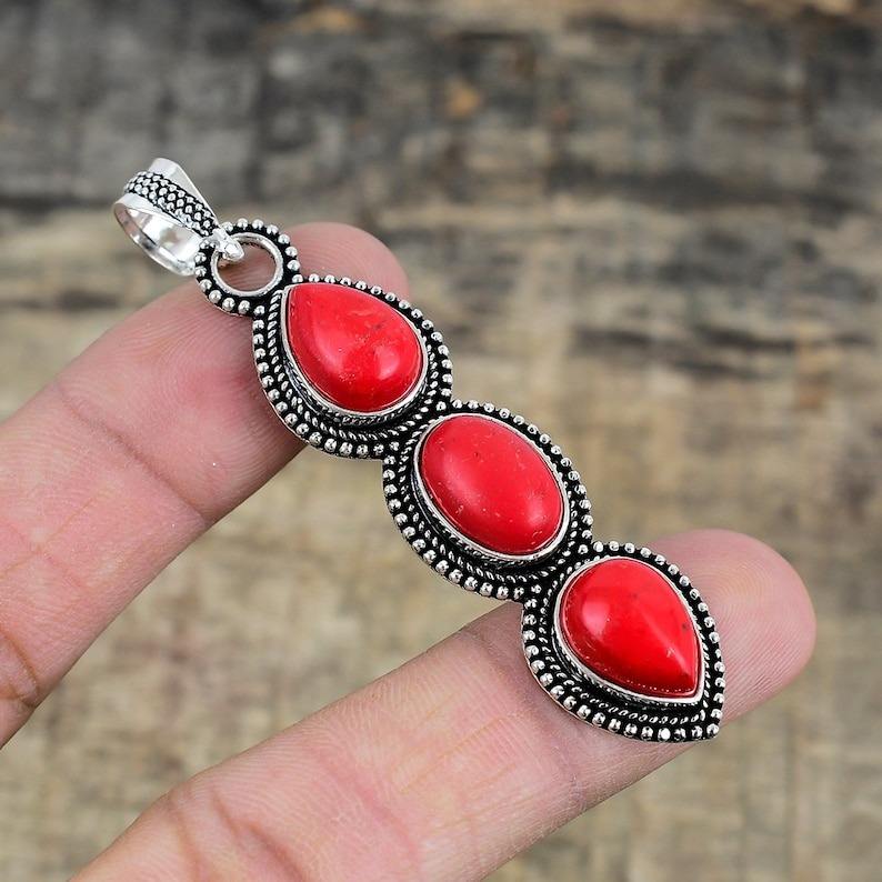 Bijoux en argent fait à la main style bohème pendentif en argent sterling 925 corail pierres précieuses tendance pendentif bijoux pour femmes cadeau pour elle
