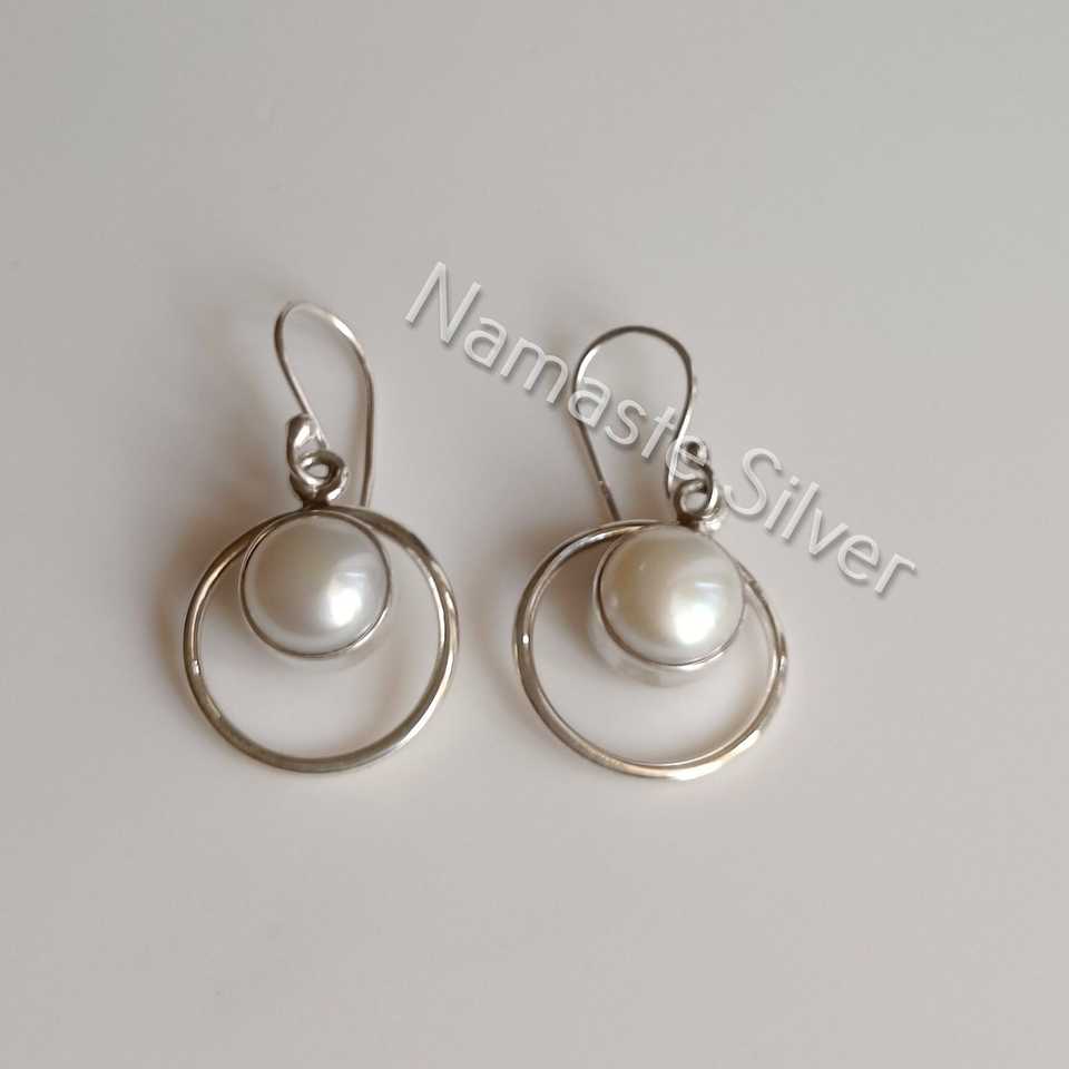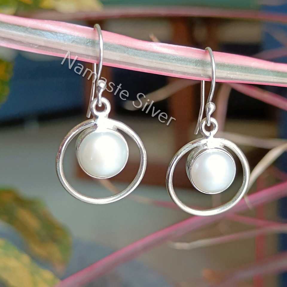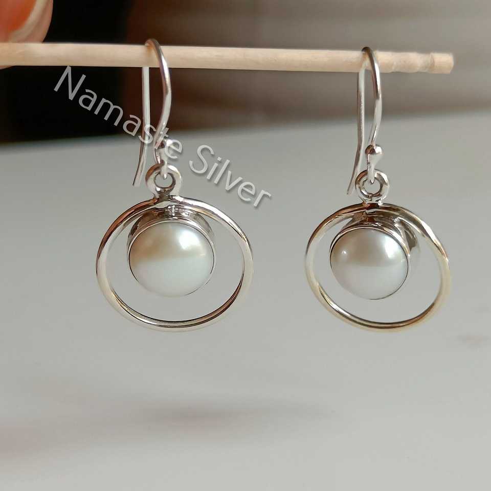Boucles d'oreilles pendantes en argent faites à la main avec perles d'eau douce, bijoux élégants en perles, cadeau de mariage pour elle