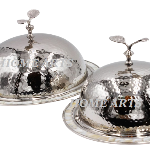 Beurrier en acier inoxydable poli à la main, plat à beurre de forme ronde pour Restaurant