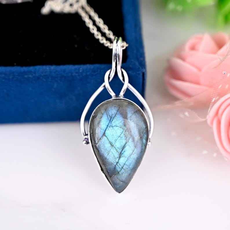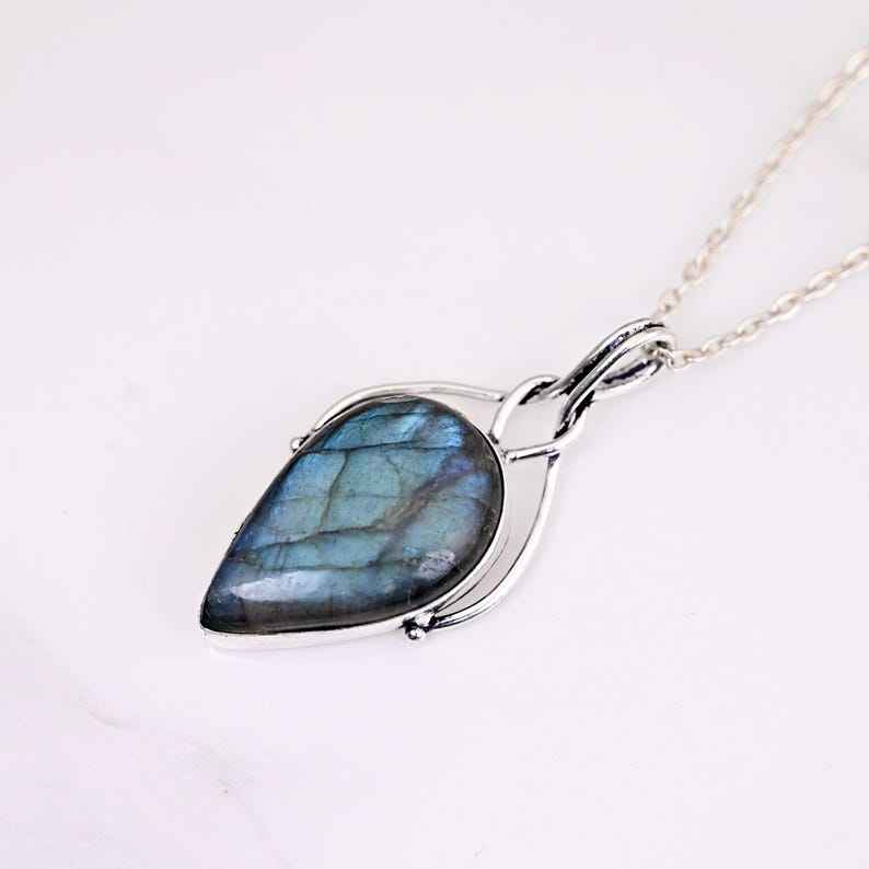 Pendentif Labradorite enroulé en fil d'argent fait à la main Cadeau de bijoux en pierres précieuses uniques pour elle