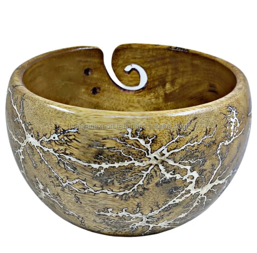 Bol en fil de bois de conception ronde simple faite à la main pour tricoter à la main 3mm d'épaisseur exporté d'Inde par Humran