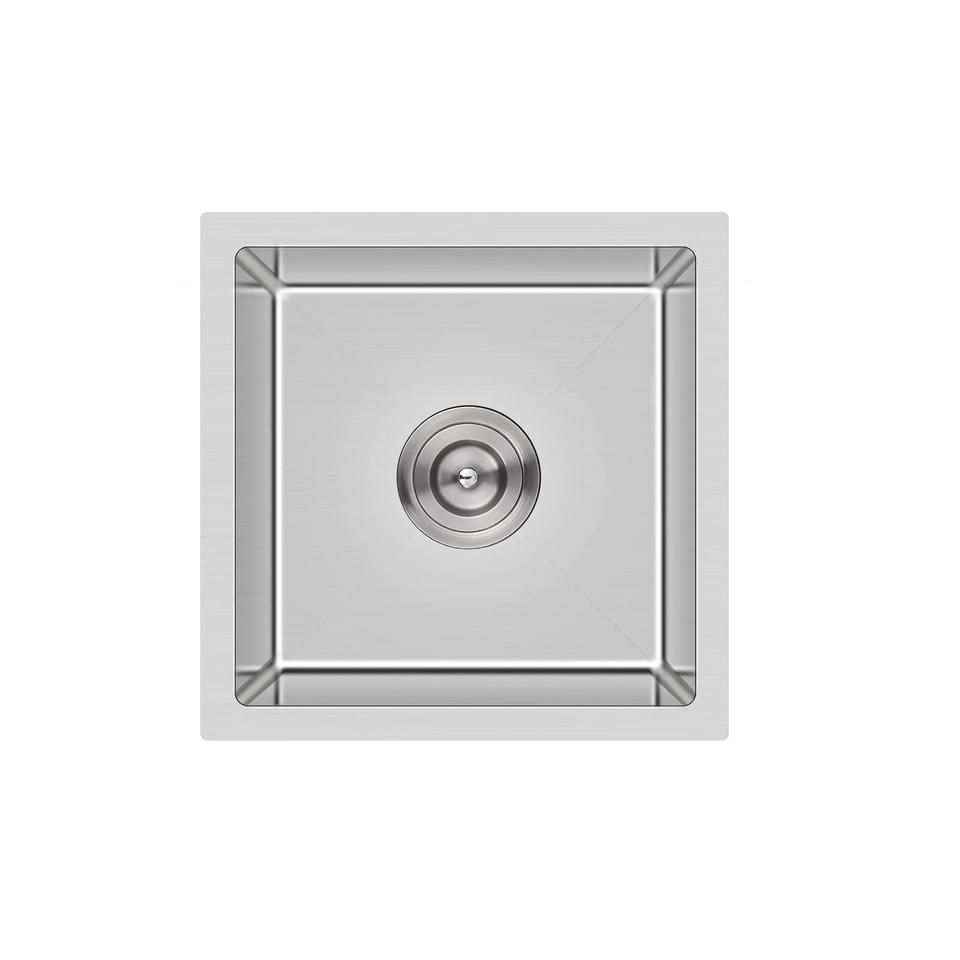 Évier de cuisine RV artisanal Art Déco à cuve unique en argent, petit modèle, avec panier de vidange