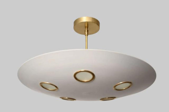 Lustre suspendu concave en laiton à six lumières, fait main, style Sputnik, moderne du milieu du siècle, pour la maison, le bureau, LED