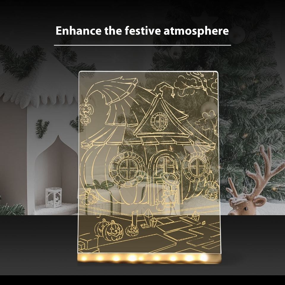Croquis faits à la main acrylique conseil LED veilleuse Halloween bricolage sculpture avec batterie pour chambre noël atmosphère éclairage