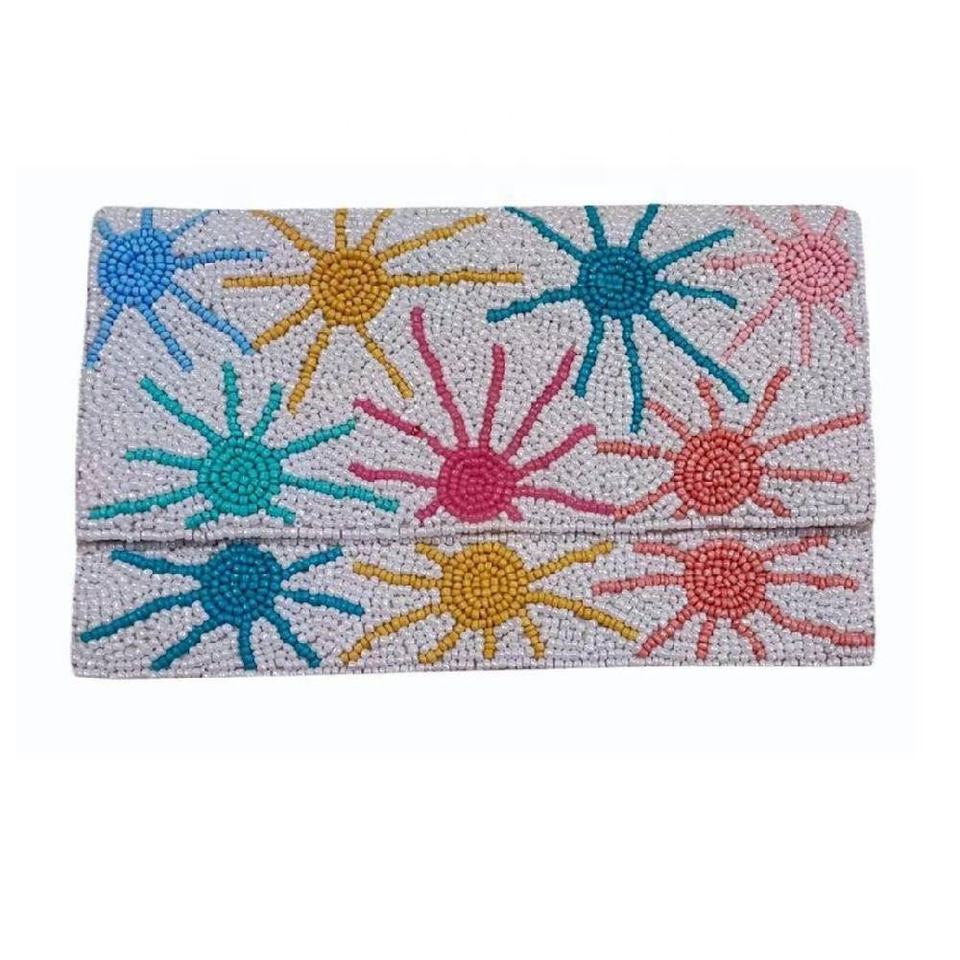 Petite pochette à monnaie artisanale Sunrise, brodée à la main, pour ranger les petits essentiels (pièces de monnaie, cartes, espèces)