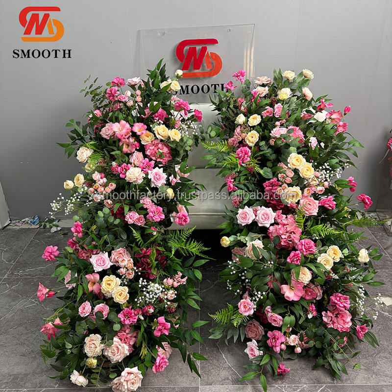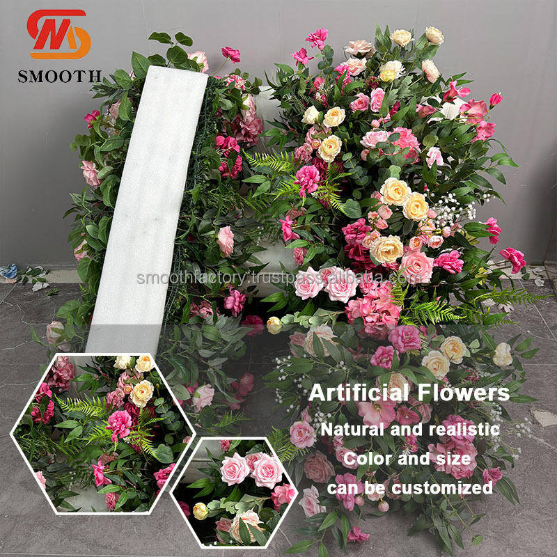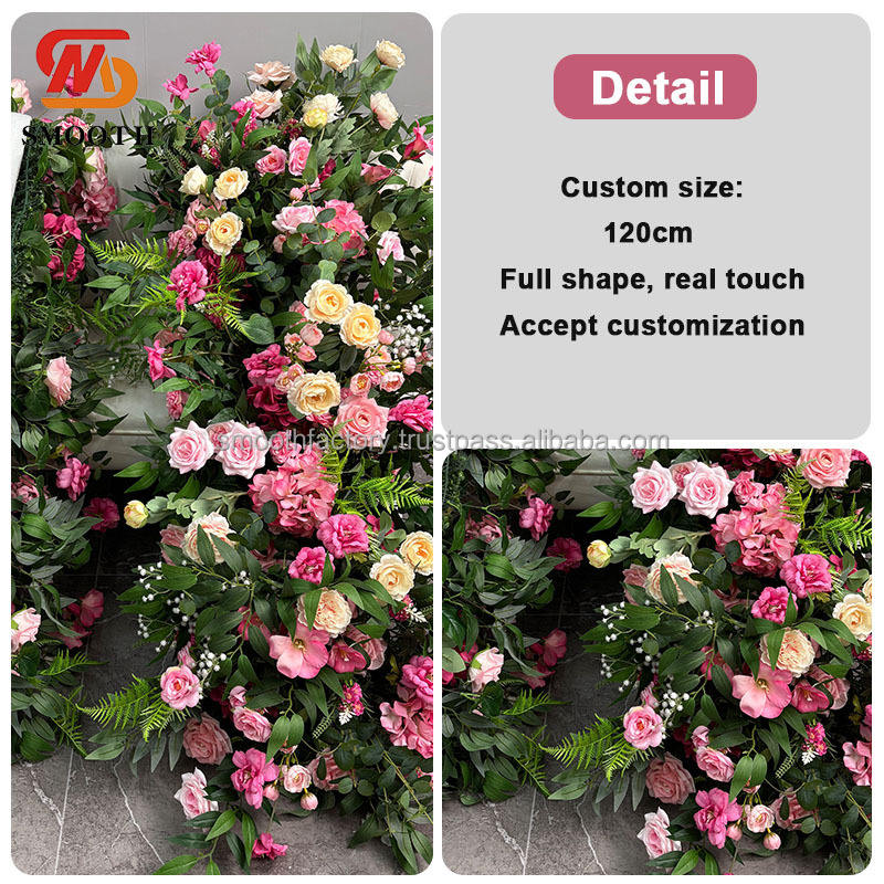 Arrangement de roses artificielles roses lisses faites à la main, centre de table en fleurs douces, décoration de scène pour la Saint-Valentin, allée