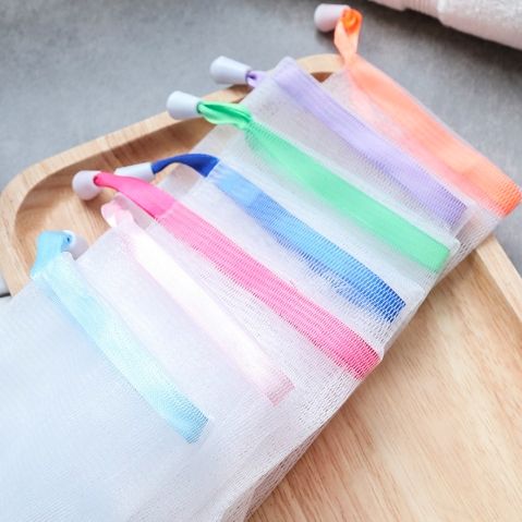 Éponges et tampons à récurer Sac de savon en nylon souple pour douche suspendu avec cordon de serrage pour séchage moussant