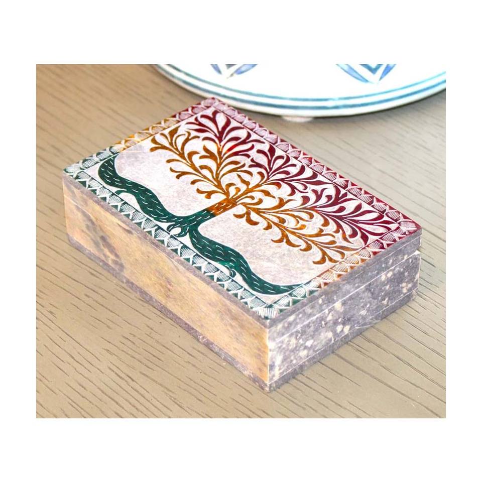 Handmade Soapstone Indian Art Tree Work Medium Size Jewelry BoxProduct name