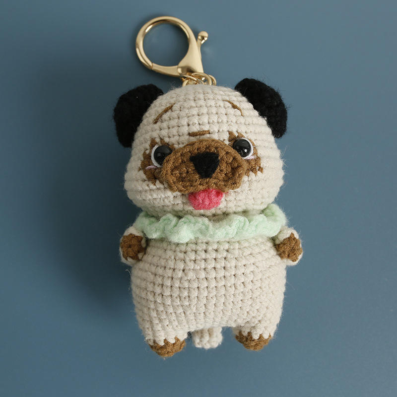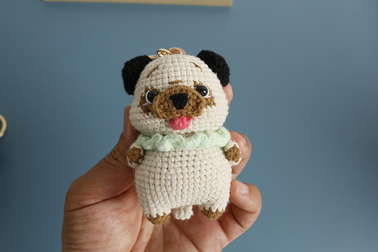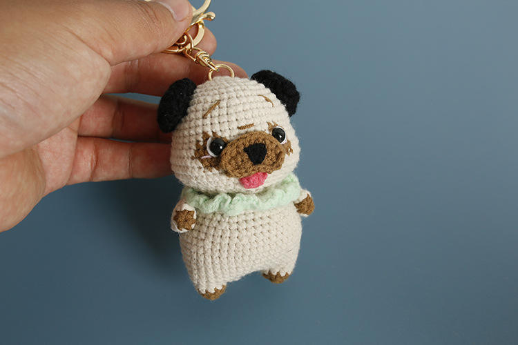 Porte-clés en crochet doux fait à la main, chien corgi, pékinois, poupée animale, forme 3D, porte-clés de dessin animé, charme amusant, chiot