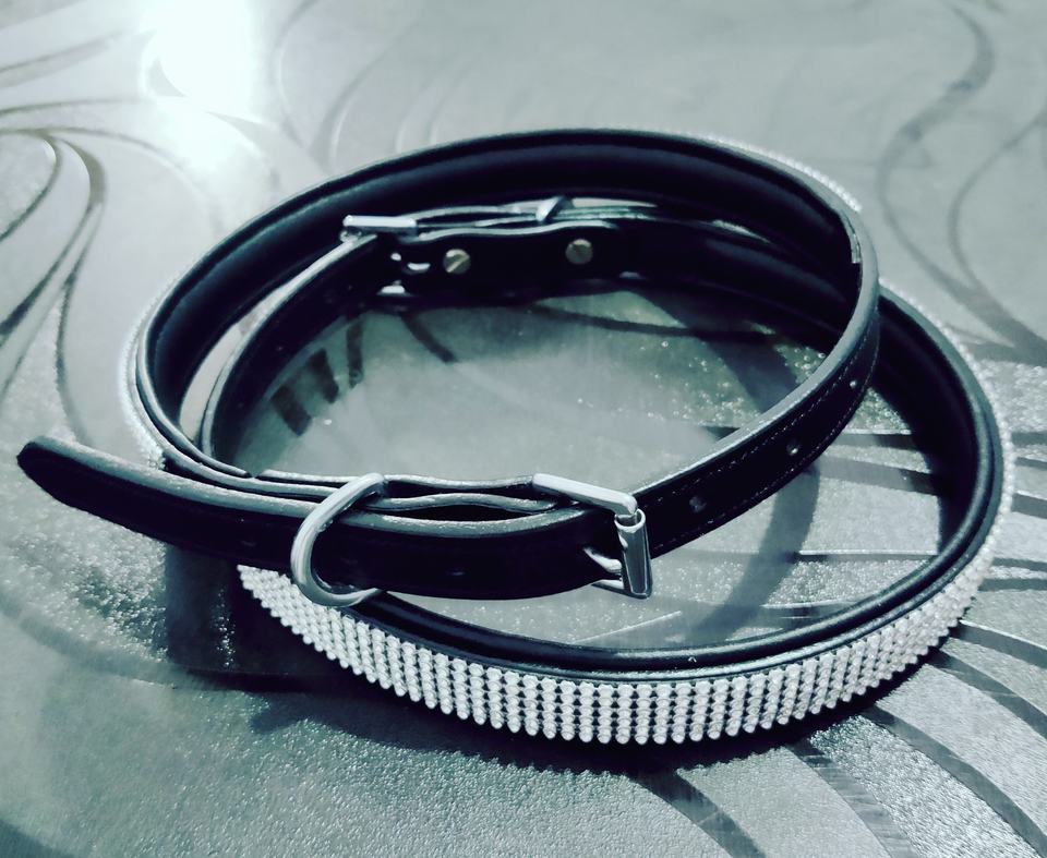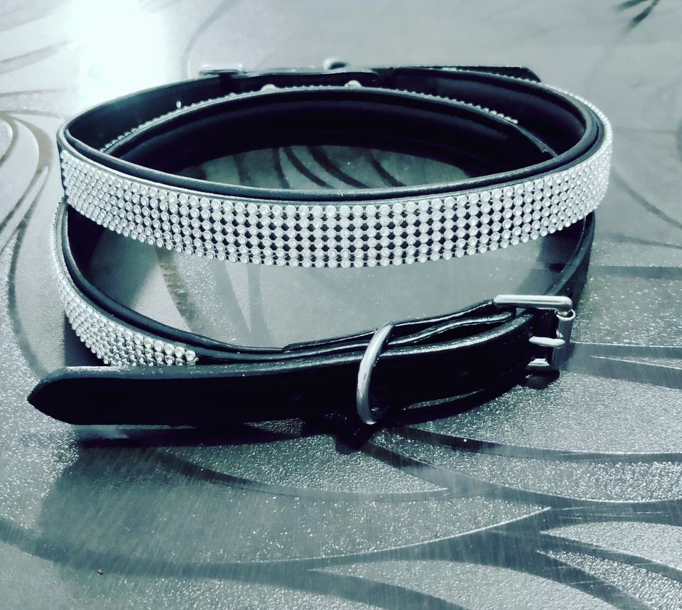 Collier de chien fait à la main motif solide Bling Bling personnalisé en cuir rembourré avec décoration en dentelle cristal strass Design pour animaux de compagnie