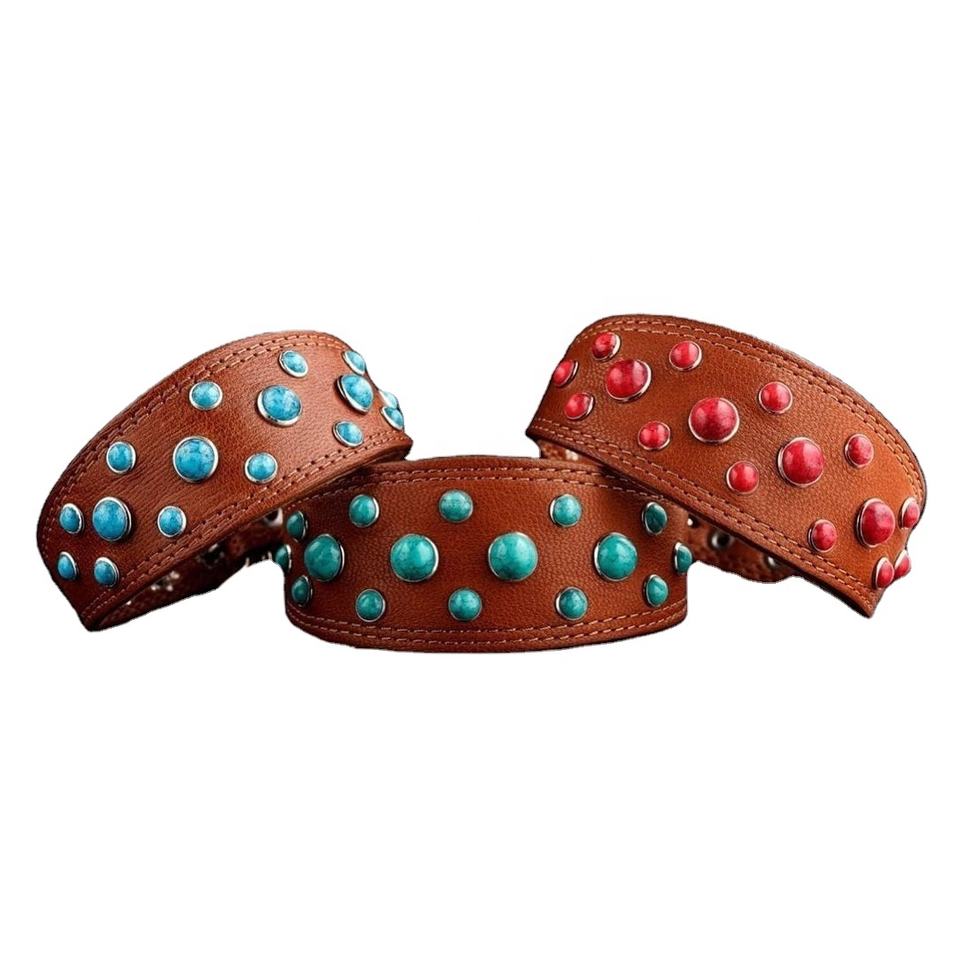 Collier de chien en cuir véritable à motif solide fait à la main avec décoration de rivet personnalisée Fabricant et grossiste direct