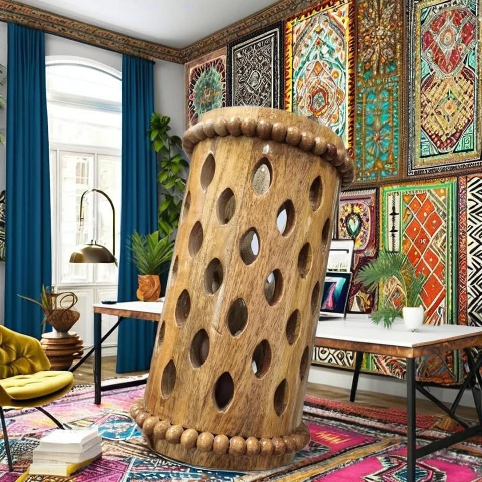 Abat-jour décoratif cylindrique en bois massif fait à la main, lanterne rustique, couvercle de lampe, ampoule LED, bois naturel poli, pour la maison, la chambre à coucher