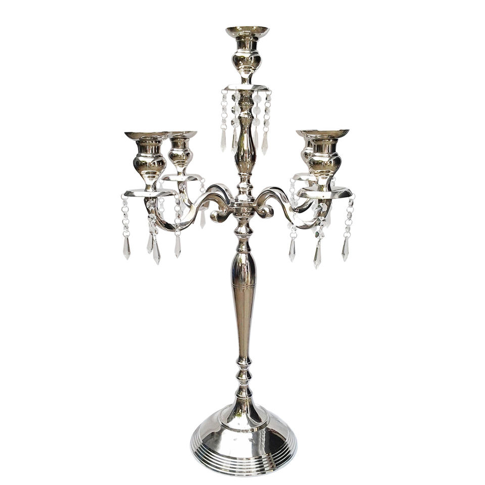 Bougeoir carré fait main candélabre en argent personnalisé nickelé cristaux suspendus vente chaude nouveau Design pour repas décoratif