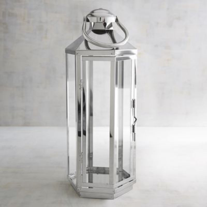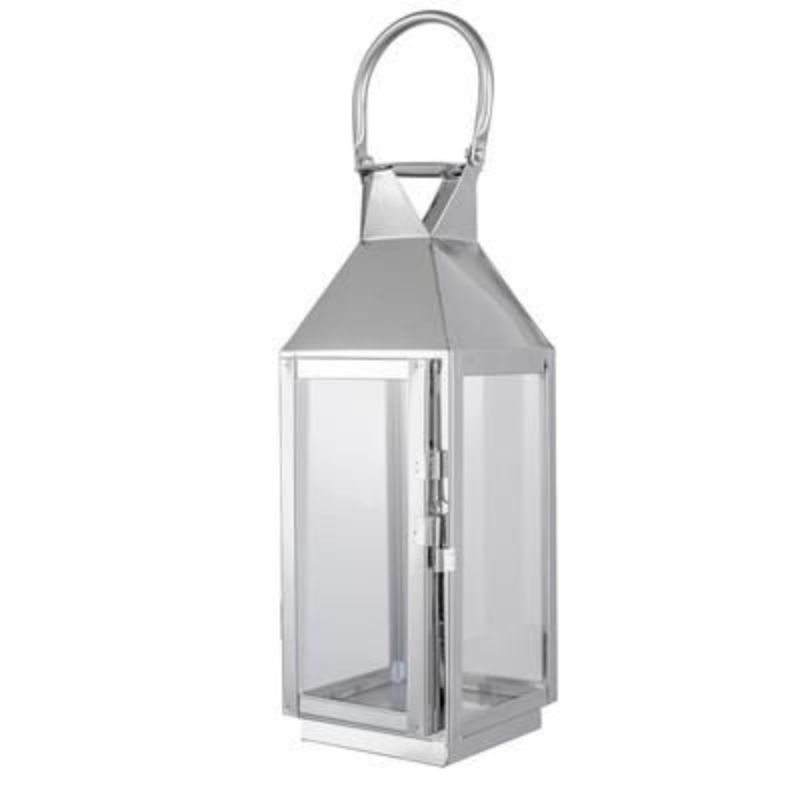 Lanterne à bougie suspendue carrée faite à la main en acier inoxydable argenté et verre pour la maison, le jardin, le balcon, pour la décoration de Noël
