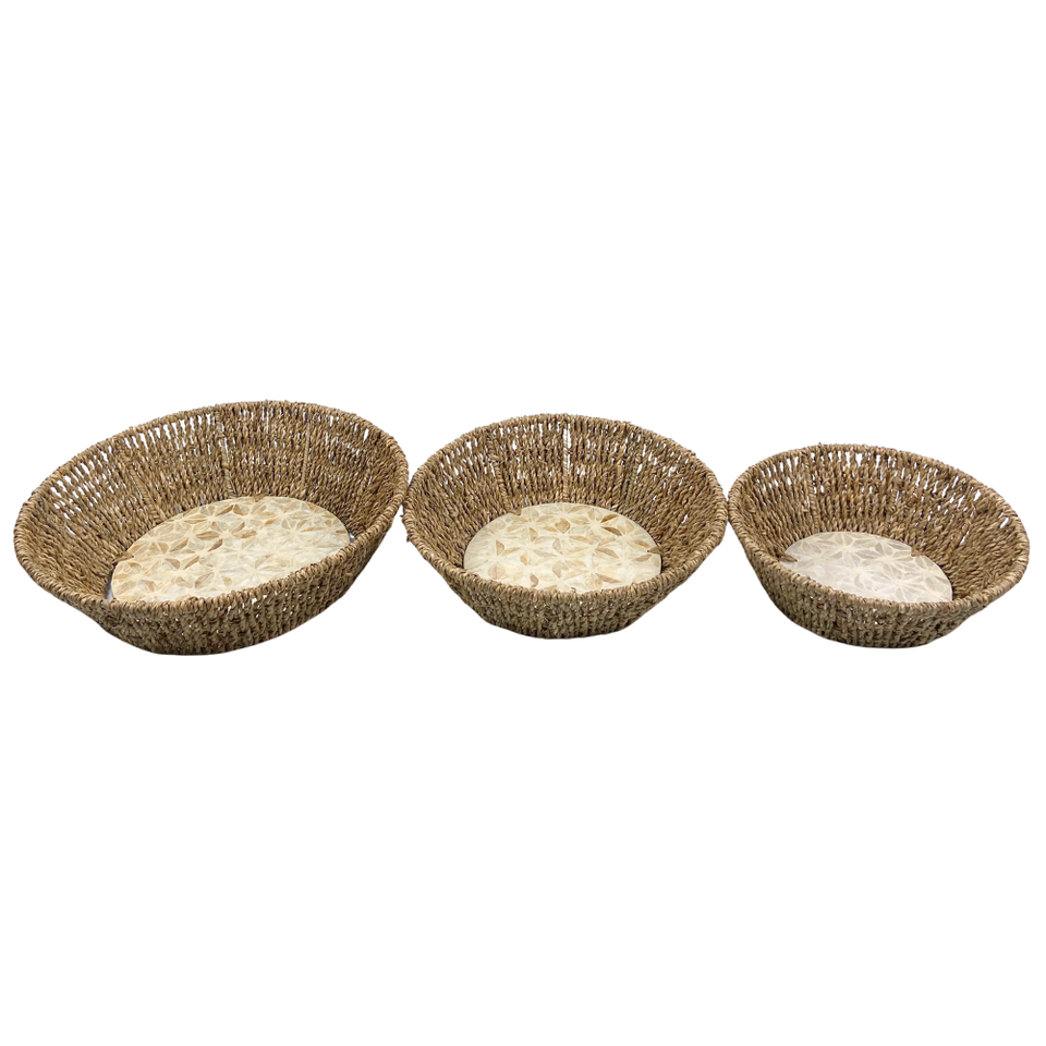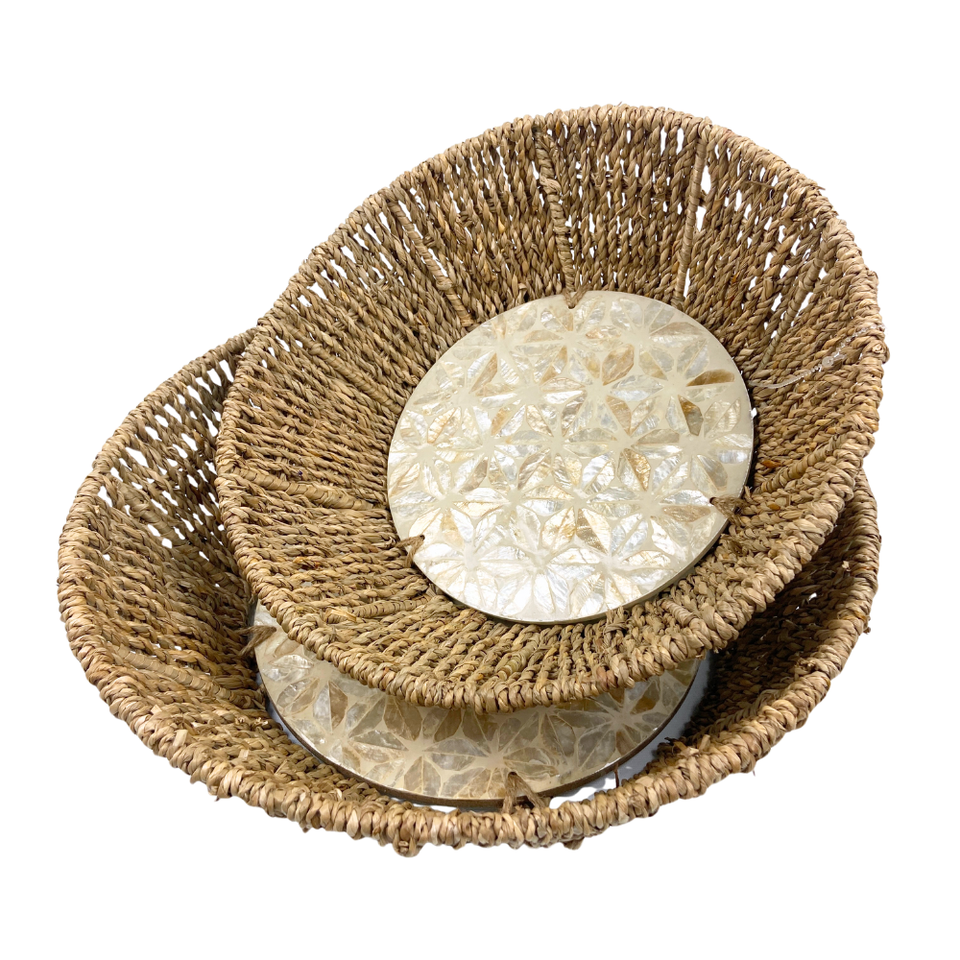 Plateau de sedge carré en MDF fait à la main avec poignées, plateau de service décoratif en panier tissé naturel avec motif floral géométrique