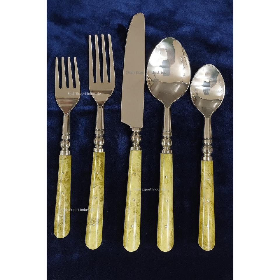 Ensemble de couverts faits à la main en acier inoxydable avec poignée en incrustation d'os anti-choc pour la maison, la table à manger, la vaisselle et la vaisselle