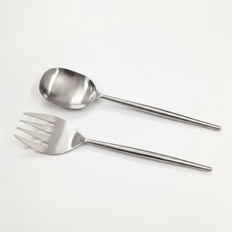 Ensemble de service à salade avec manche en acier inoxydable fait main ensemble de service à salade en métal en acier inoxydable grande cuillère et ensemble de serveur