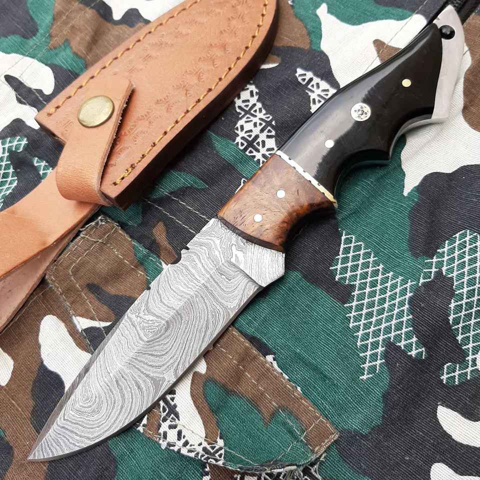 Couteau de chasse artisanal en acier inoxydable avec manche en acier et étui en cuir fin, couteau de survie pour la chasse