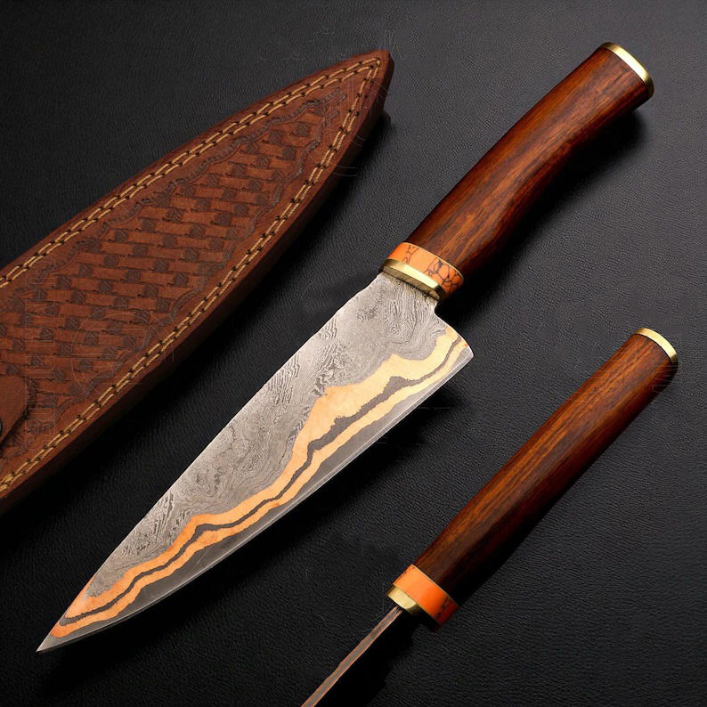 Couteau de chef de luxe en acier inoxydable fait à la main, à bord dentelé, cadeau de chasse en plein air, avec garantie de 3 ans, service OEM