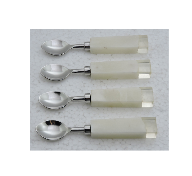 Cuillère en acier inoxydable faite à la main manche en acrylique et marbre cuillère en laiton la plus vendue avec poli à la main
