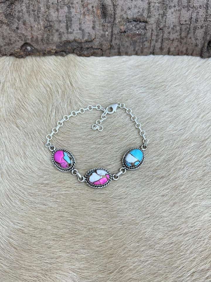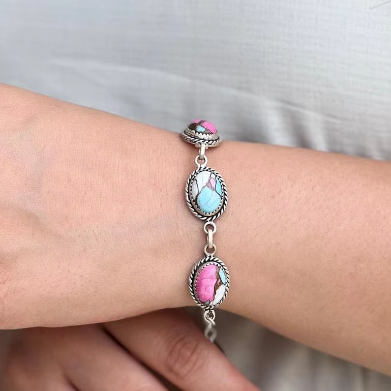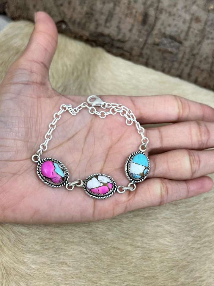 Handmade Sterling Silver Chain Bracelet With Cotton Candy Turquoise Unique Gemstone Jewelry Gift For Women