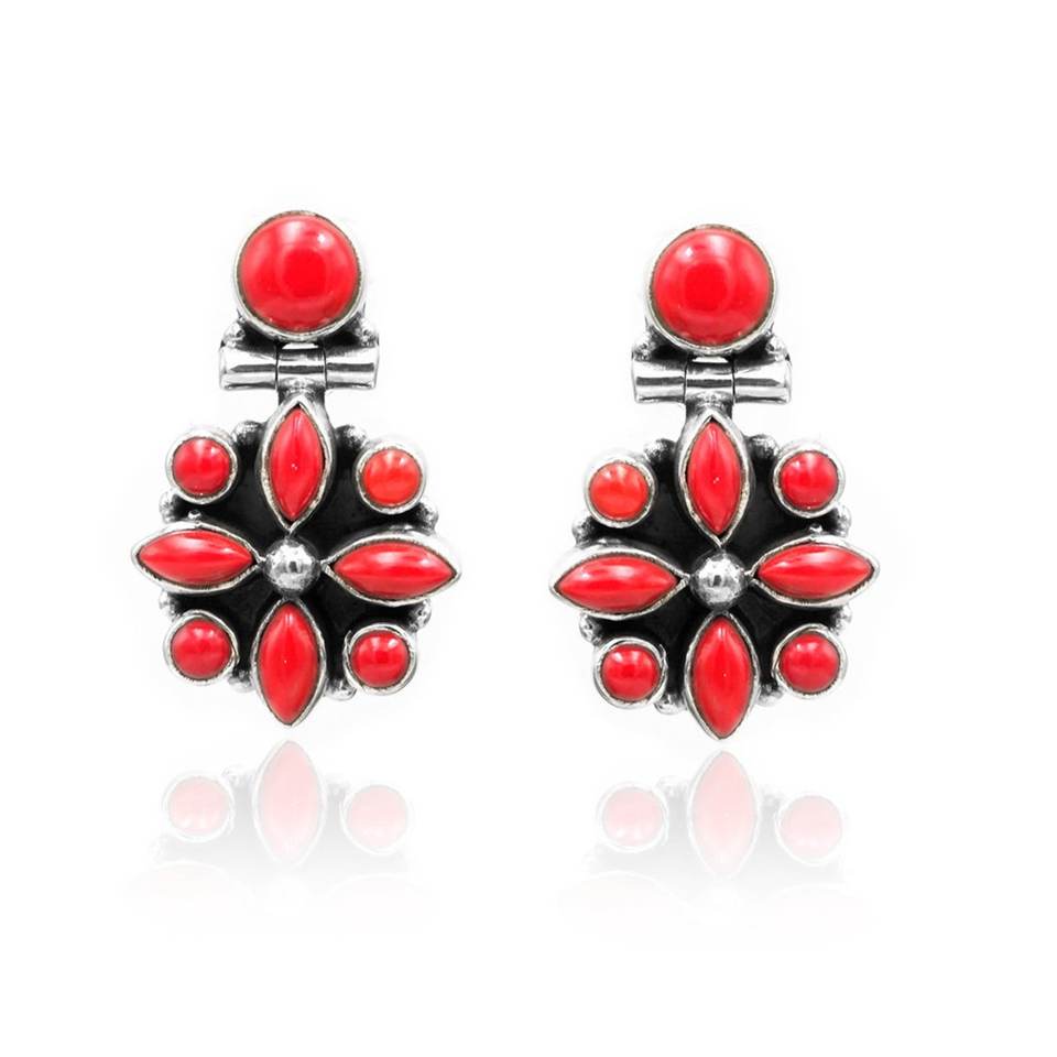Boucles d'oreilles corail en argent Sterling faites à la main pierre précieuse naturelle Turquoise filles bijoux en cristal pour femmes article cadeau E0614-GS