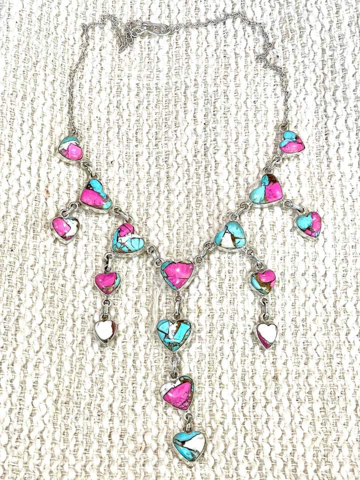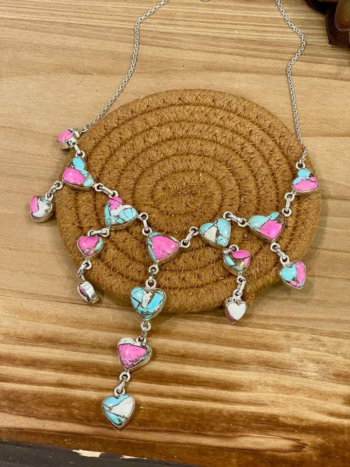 Fait à la main en argent Sterling barbe à papa Turquoise coeur goutte collier Unique Artisan bijoux cadeau romantique pour elle