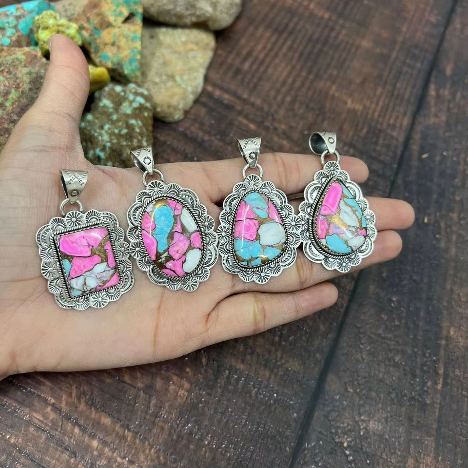 Fait à la main en argent Sterling barbe à papa Turquoise pendentif Artisan bijoux cadeau pour elle doux Pastel Boho Look