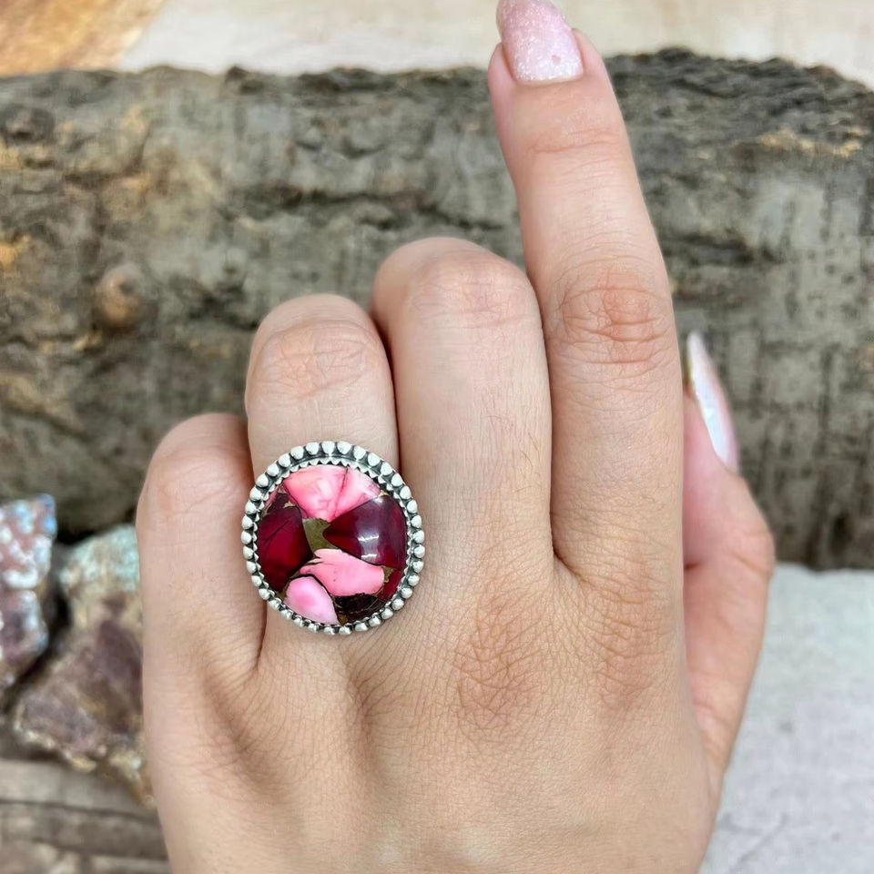 Handmade Sterling Silver Dahlia Rose Adjustable Ring Unique Gemstone Jewelry Gift For Women Her