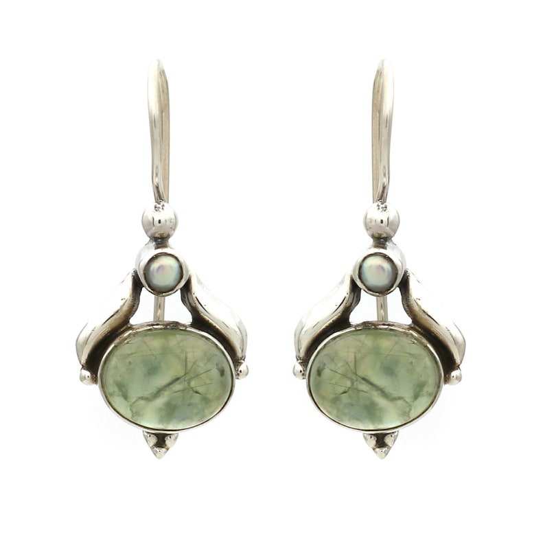 Boucles d'oreilles en argent sterling faites à la main avec perle de pierres précieuses naturelles et bijoux de réglage de lunette de Prehnite pour mariage