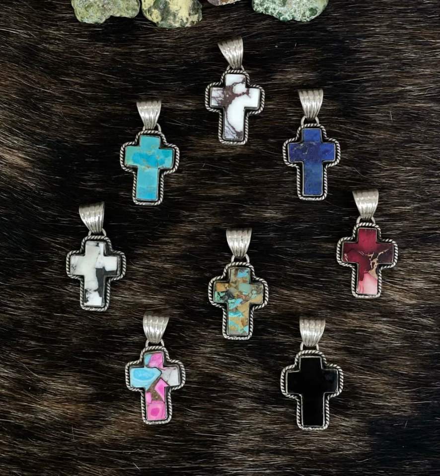 Pendentif croix en argent sterling fait à la main avec plusieurs pierres précieuses collier religieux spirituel bijoux Boho uniques cadeau de guérison pour elle