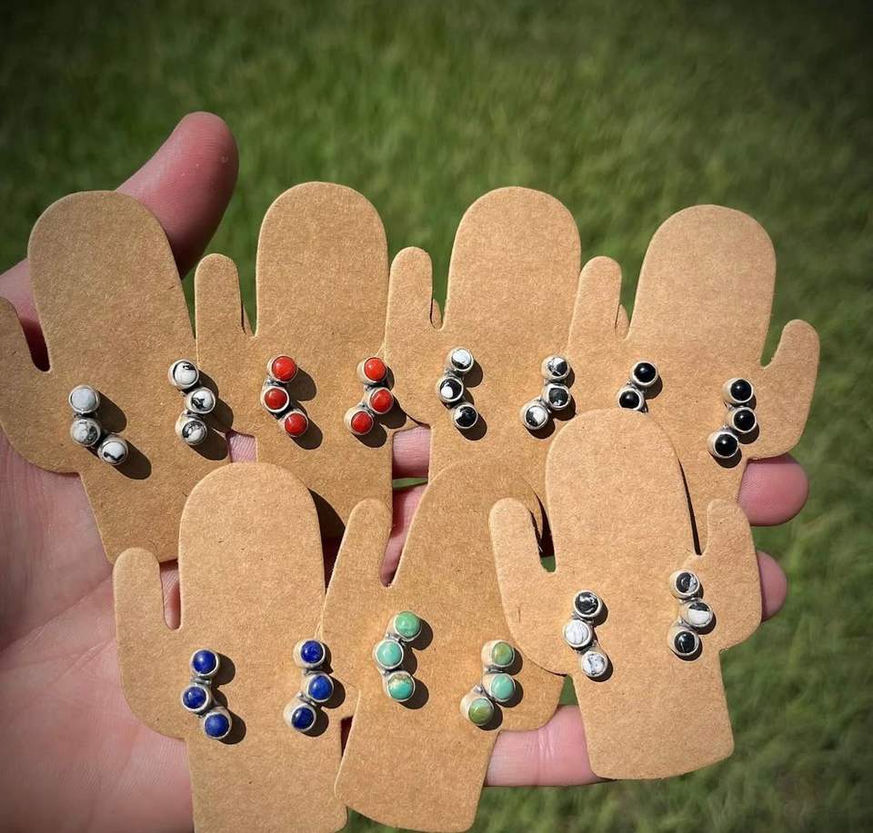 Boucles d'oreilles faites à la main en argent sterling avec trois pierres, bijoux artisanaux élégants, vêtements de tous les jours de style minimaliste pour femmes