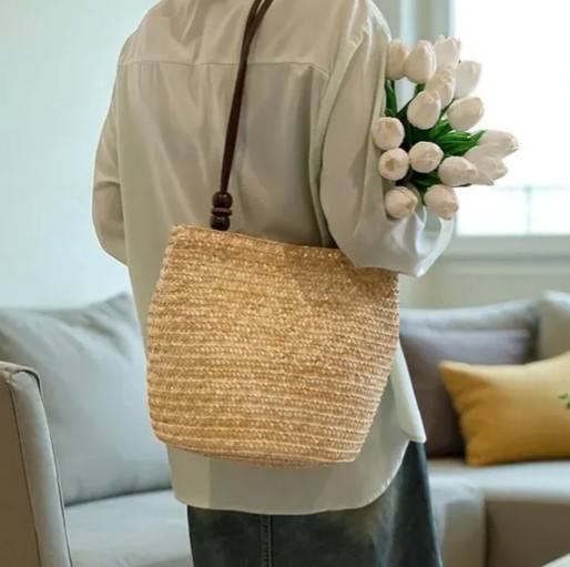 Sac de plage en paille tissé à la main, grand sac à bandoulière d'été
