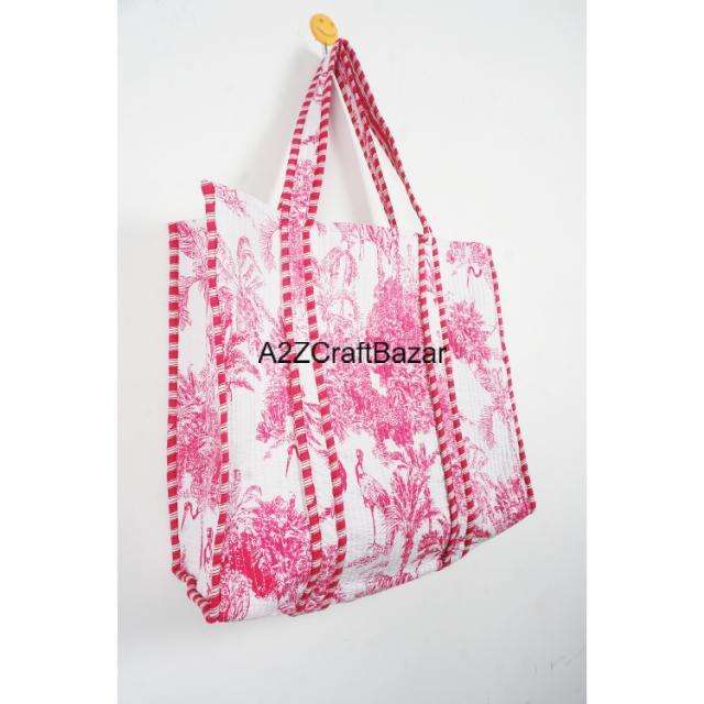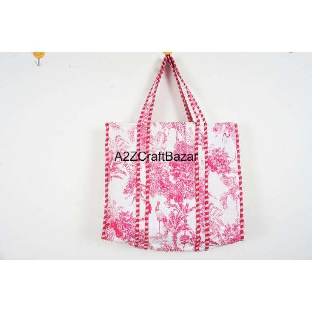 Sac fourre-tout matelassé à rayures 100 % coton fait main avec longues poignées, grand format, pour femme, écologique, style bohème indien, idéal pour le shopping et les expositions