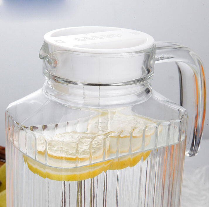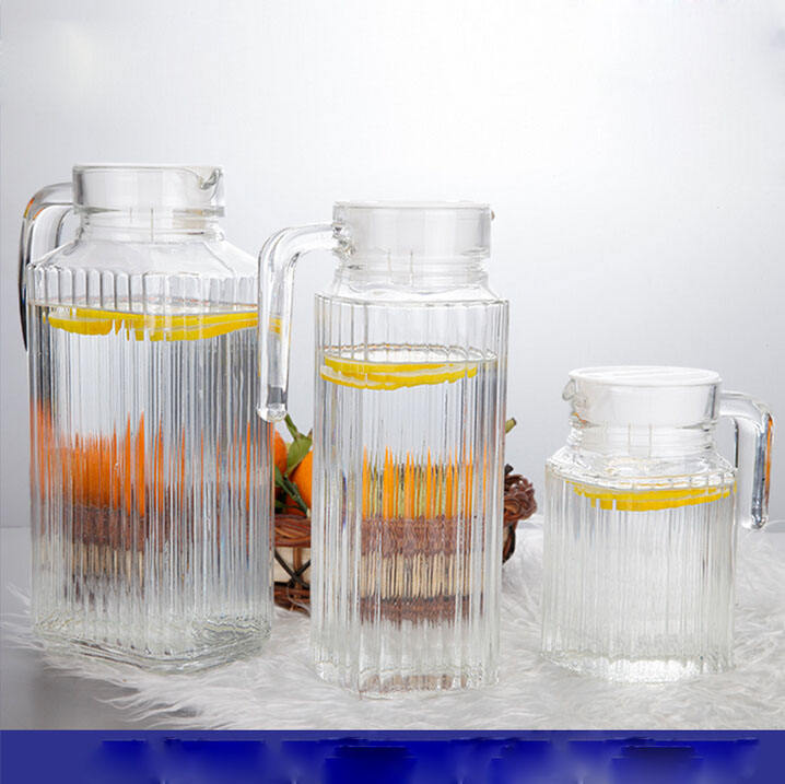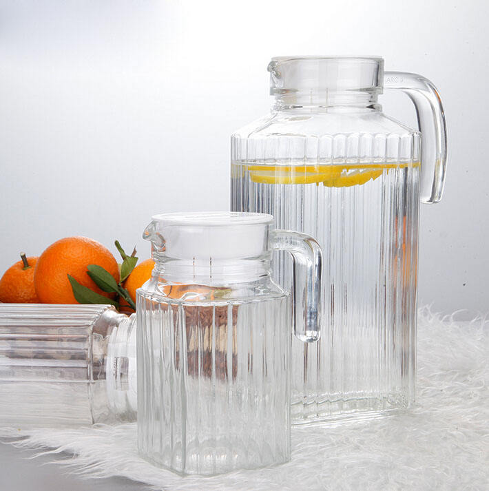 Mini cruche en verre décorative à rayures faites à la main avec poignée, couvercle de pichet Ketter pour jus, eau, jus, cruche en verre artisanale traditionnelle