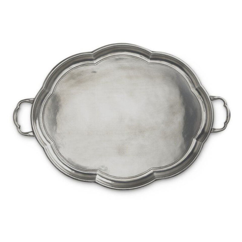 Plateau de service élégant en étain fait à la main avec poignées, grand plateau de service ovale en métal décoratif, élégant plateau de service pour la cuisine, décoration de la maison