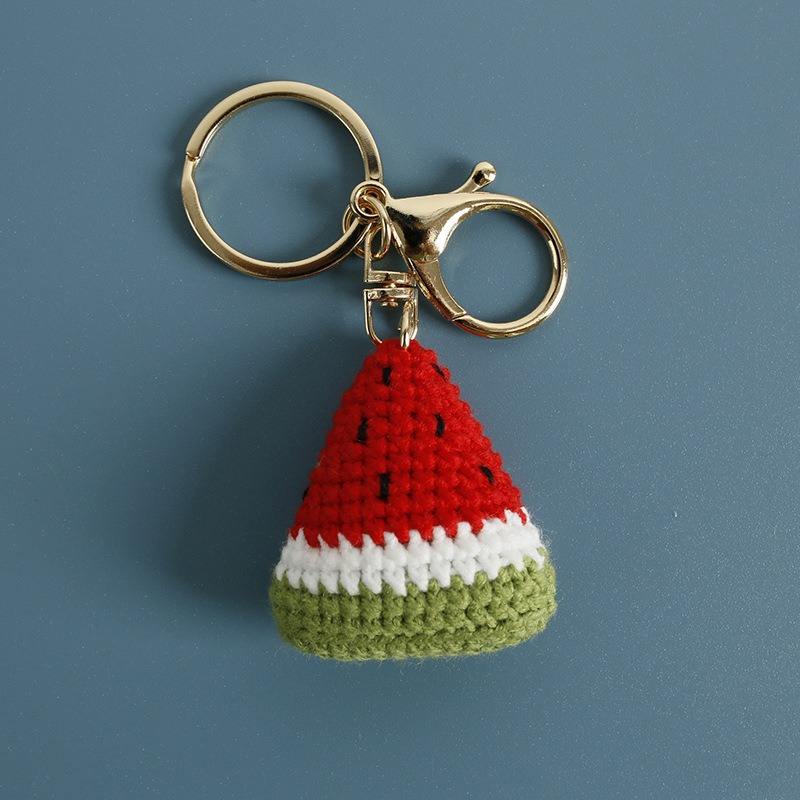 Handmade Summer Watermelon Amigurumi Keychain Knit Knitting Yarn Crochet Fruit Pendant Soft Jewelry and Toys