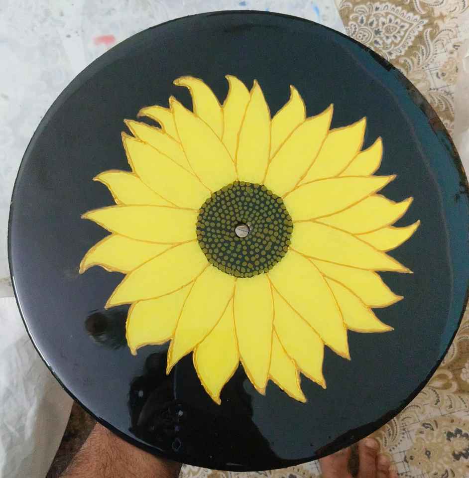 Horloge murale en résine époxy faite à la main, motif tournesol, art floral 3D, grande horloge murale ronde silencieuse pour cuisine, jardin, décoration murale moderne pour la maison